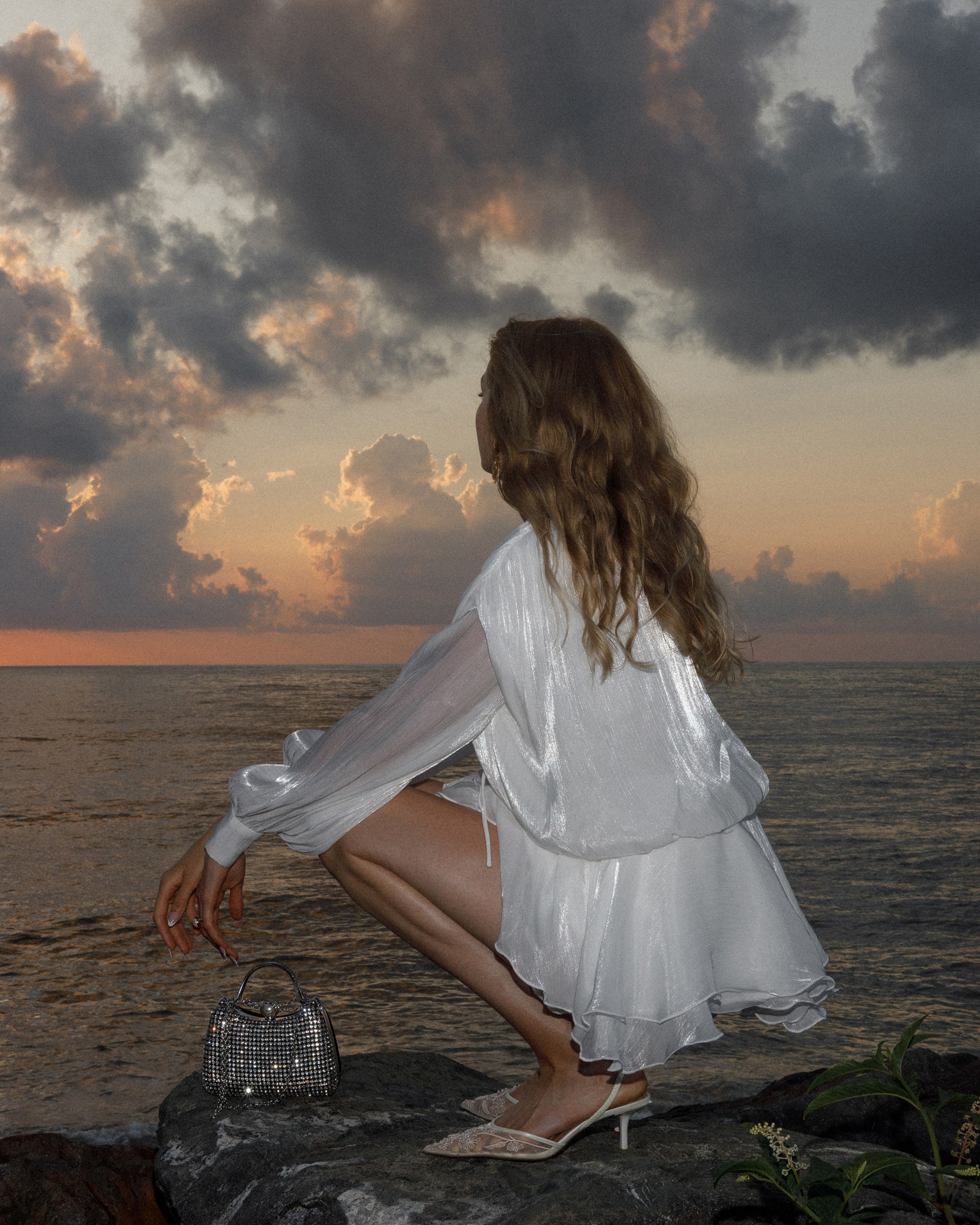 Прогулка на закате на берегу черного моря
